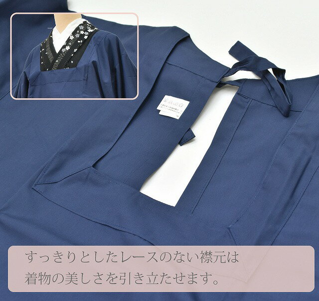 割烹着 長め丈 ロング割烹着 着物用 エプロン シンプル 日本製 紺色 sin4815-kim 【新品】【着物 お値打ち 通販 呉服 きもの】【お取り寄せ】