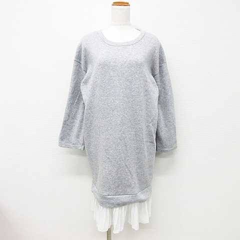 【中古】イーハイフンワールドギャラリー E HYPHEN WORLD GALLERY PEACE ワンピース チュニック クルーネック ロング丈 裾プリーツ スウェット素材 無地 裏起毛 コットン混 グレー ホワイト F レディース 【ベクトル 古着】 200313 ベクトルプレミアム店
