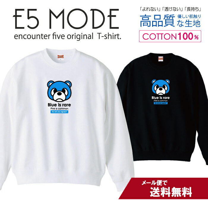 ブルーくま 熊 ベア かわいい デザイン ビッグシルエット スウェット トレーナー ユニセックス メンズ レディース 長袖 綿100% コットン ゆったり 大きめ アメリカ規格 リブ付き 黒 白 ブラック ホワイト