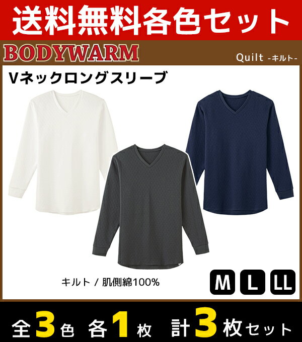 3色1枚ずつ 送料無料3枚セット BODYWARM あったかキルト VネックロングスリーブTシャツ 長袖V首 グンゼ GUNZE | メンズ 男性 紳士 下着 Vネック V首 長袖 VネックTシャツ 長袖インナー あったかインナー 男性下着 男性用 温かい 暖かい肌着 男性肌着 メンズ肌着 冬