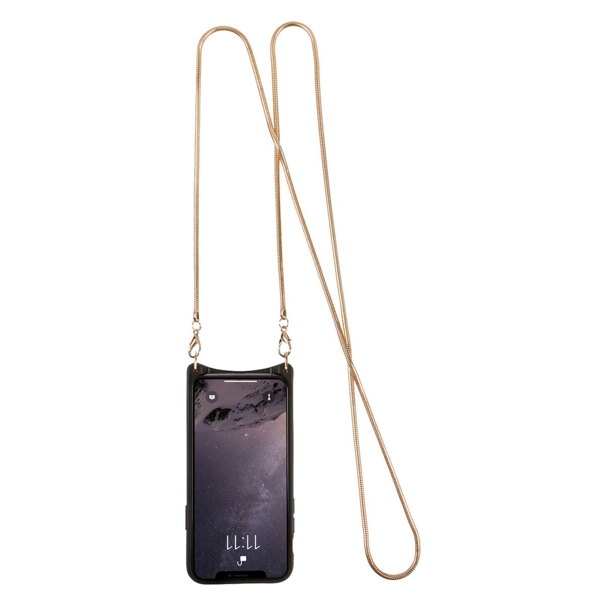 肩から斜めがけが出来るストラップの付いたiPhoneケースです。