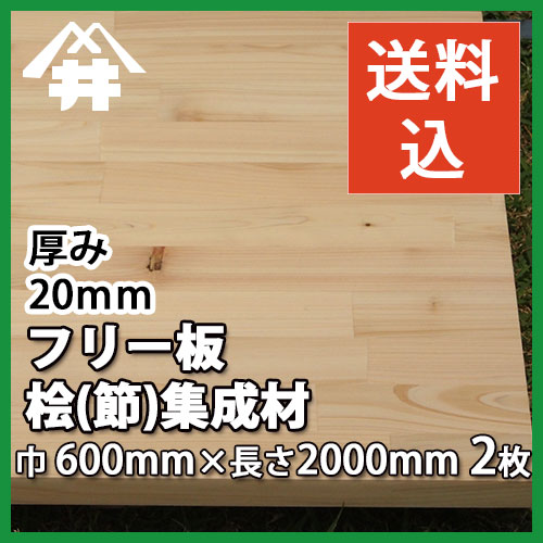 【送料込】プロ・工務店様用 フリー板 桧(節)集成材 サイズ:厚み20mm×巾600mm×長さ2000mm・・・2枚/無節タイプよりお値打ちな国産の木材。/板/長尺/天板/リノベーション/無垢集成/棚板/造作材/家具材/内装材/木材