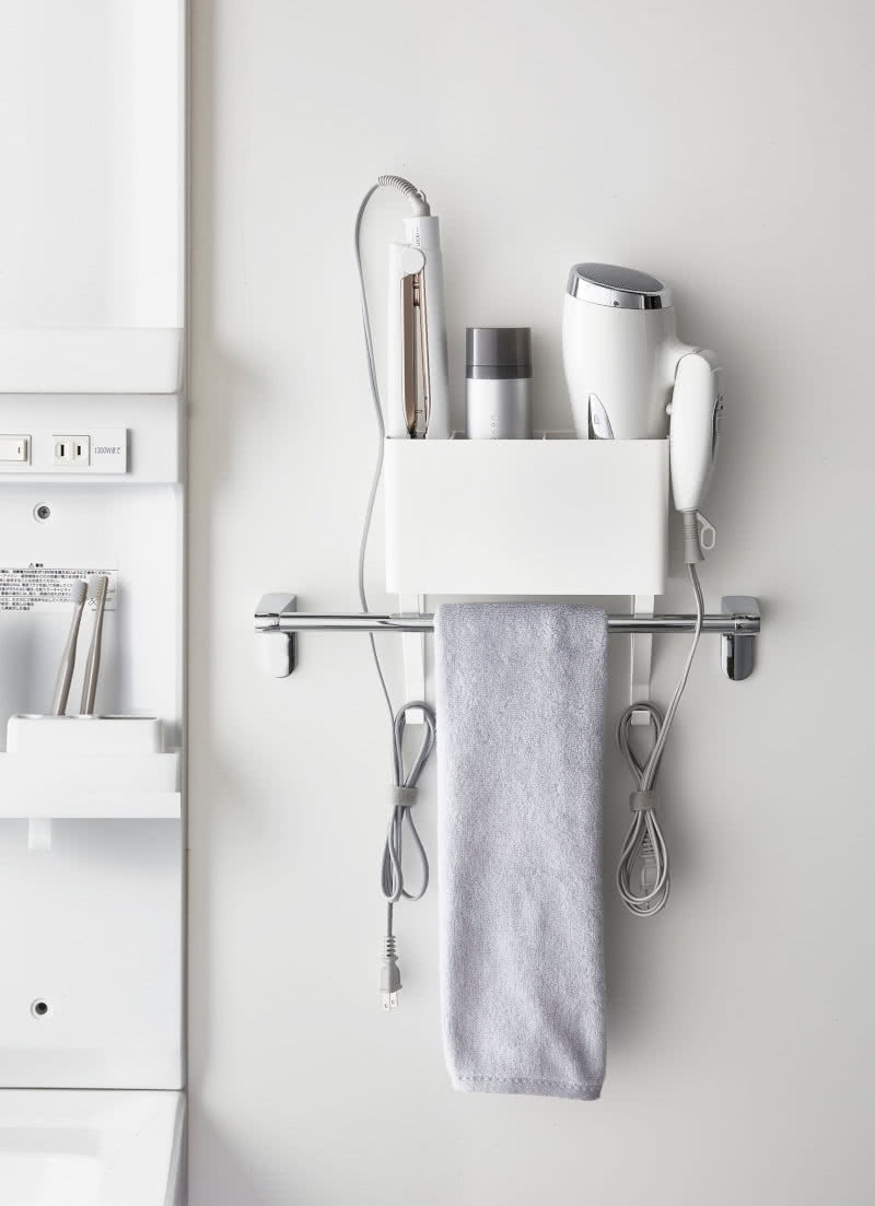 よく使うドライヤー・ヘアーアイロンなどを一括収納。