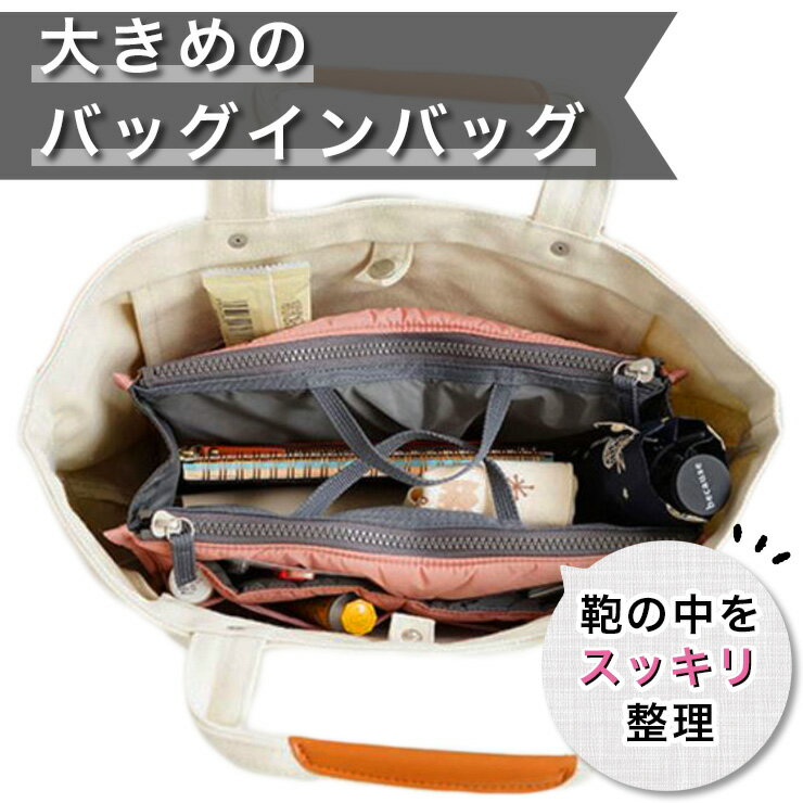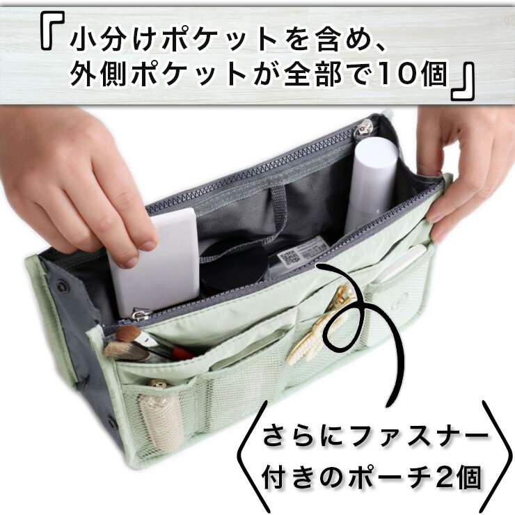 バッグインバッグ 大きめ ポーチ 小物入れ レディース 撥水 軽い 化粧ポーチ コスメ リュック かわいい おしゃれ 大きめ 仕切り ダブル ファスナー シンプル 多機能 ポケット 整理 軽い 無地 コンパクト 黒 女子 女の子 韓国 FF